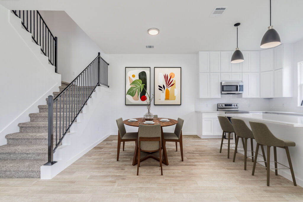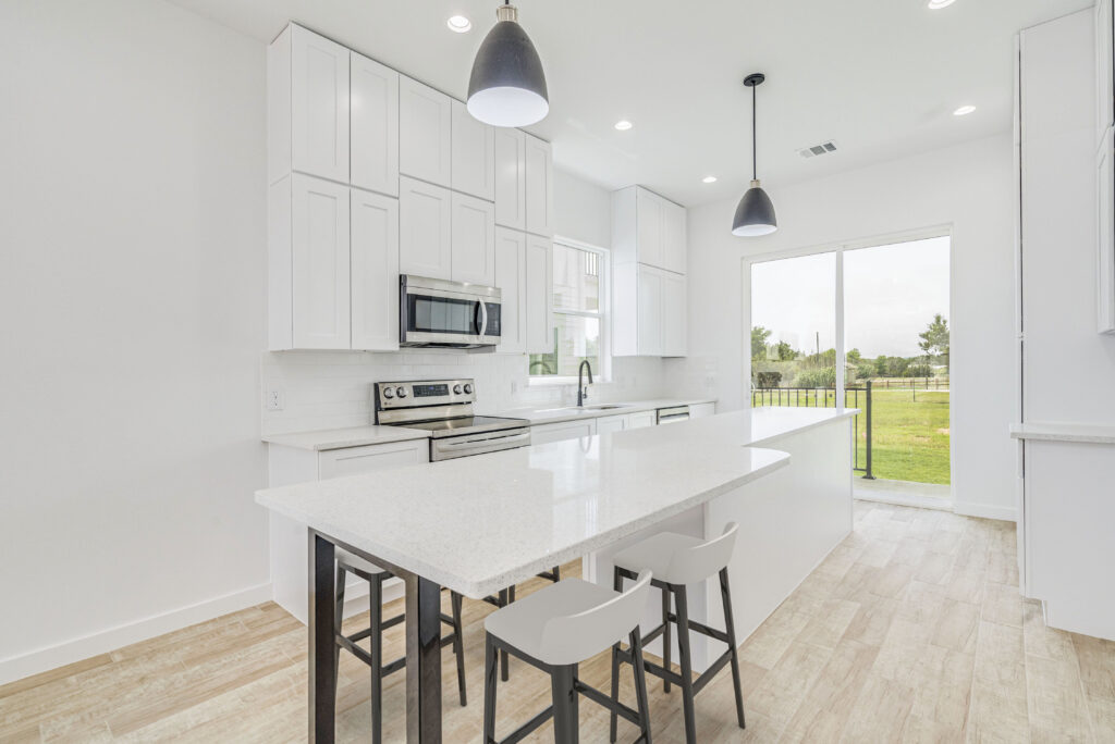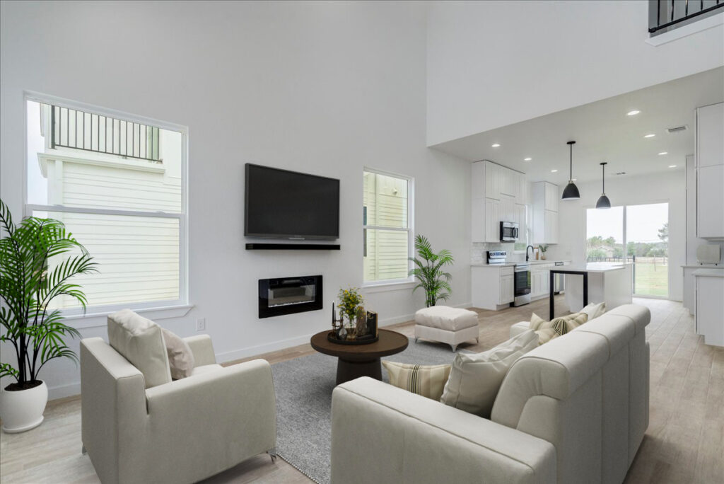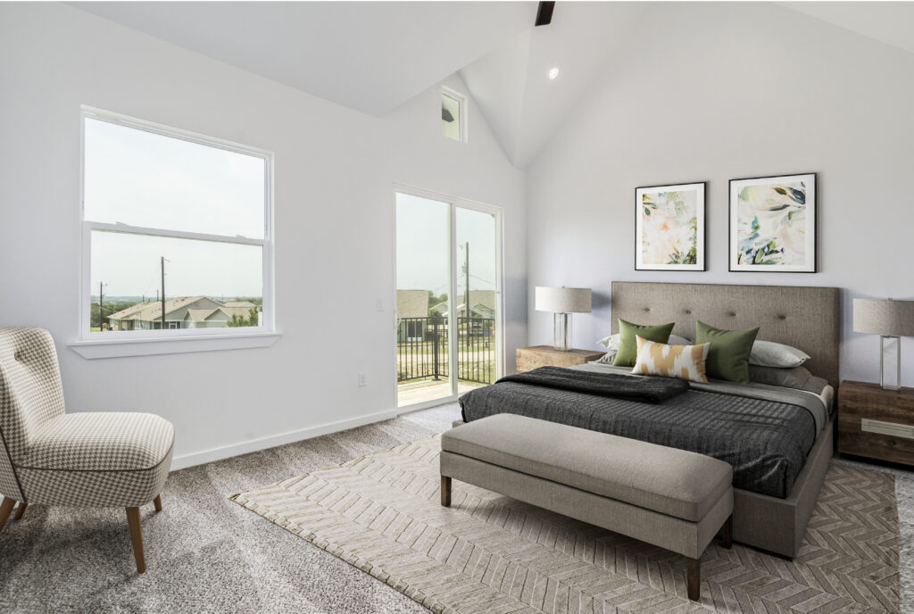 Nuestras casas cuentan con hermosos acabados personalizados que incluyen hierro forjado, puertas estilo granero, pisos de tablones anchos, techos altos y una cómoda sala de lavandería en el piso superior. Nuestra propiedad promueve una vida en armonía con la naturaleza y los espacios abiertos.